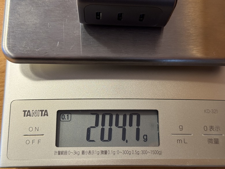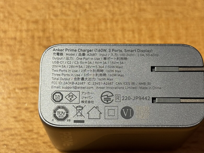 | 出力 | 単ポート利用時 : 5V⎓3A /9V⎓3A / 15V⎓3A / 20V⎓5A / 28V⎓5A (最大140W) 2ポート利用時 : 合計最大160W 3ポート利用時 : 合計最大160W |