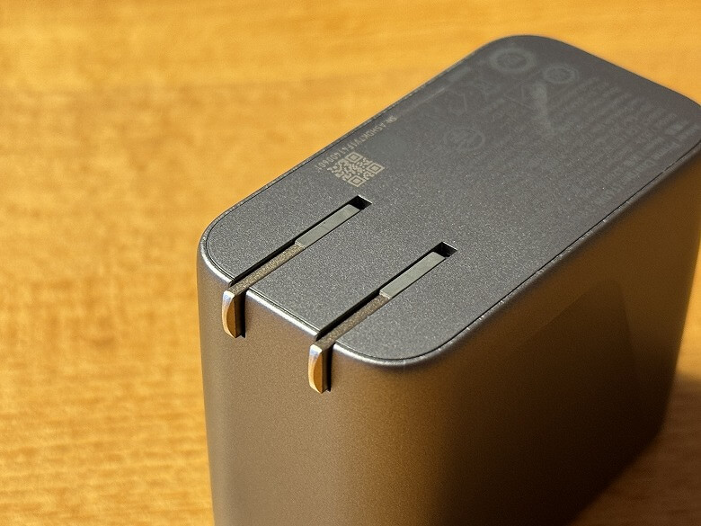 プラグ部分は折りたたみ式で、カバンに入れて持ち運ぶときも邪魔にならず他のガジェットを傷つけません。