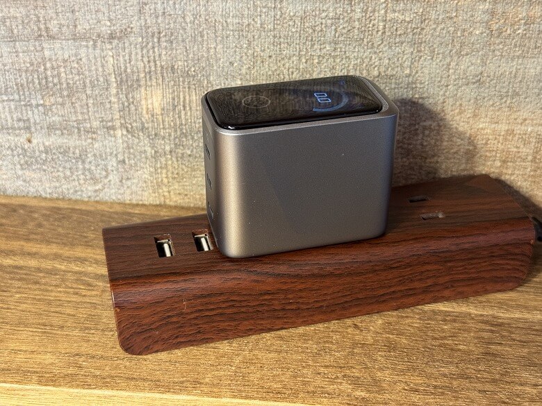 デザインもAnkerらしく洗練されており、メタリックな質感とシンプルな形状でデスクにも旅行先にも馴染む美しさ。