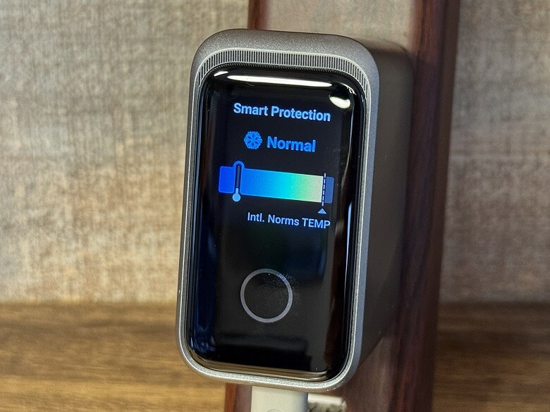 タッチ操作できるディスプレイには現在の給電状況や温度感知システムの状態が表示されます。