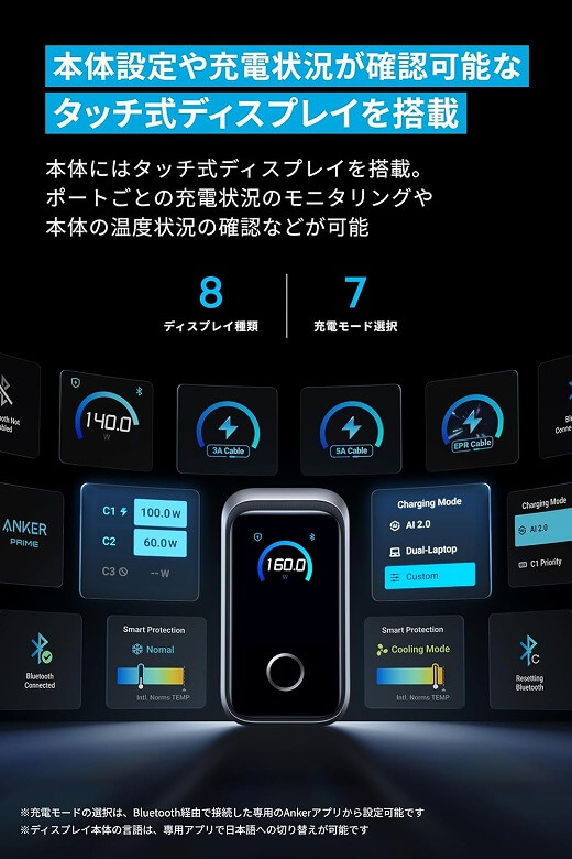 本記事では「【Anker Prime Charger (160W, 3 Ports) レビュー】GaN+タッチ式ディスプレイ搭載で充電がスマートに」について書きました。