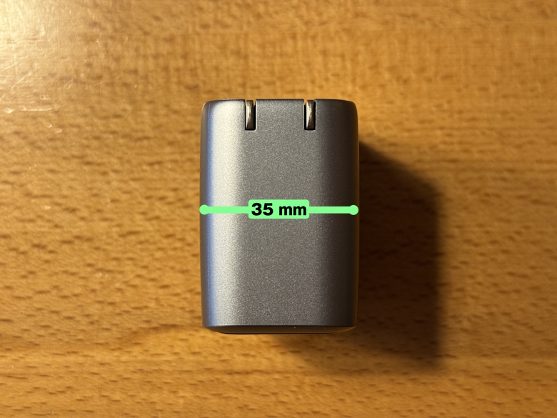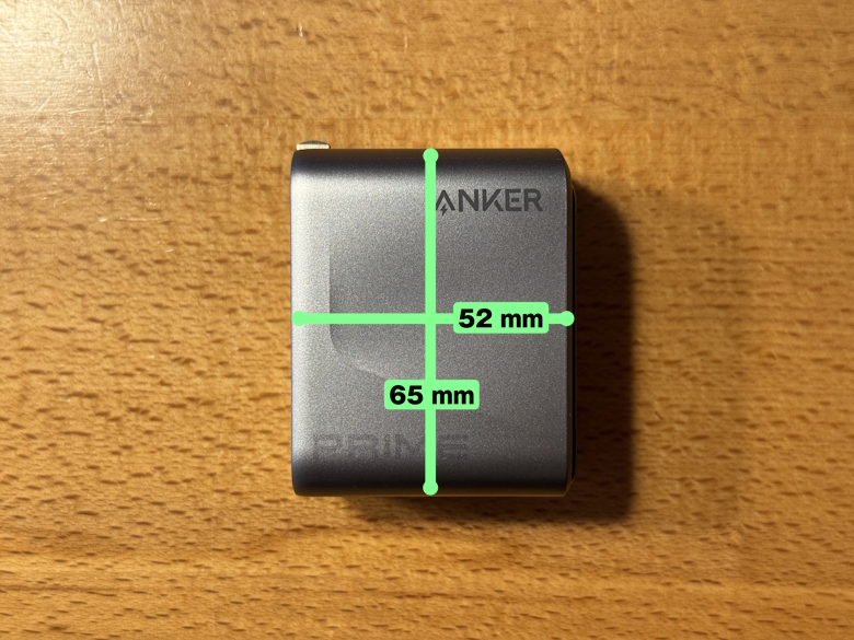 「Anker Prime Charger (160W, 3 Ports)」のサイズは65 × 52 mmです。