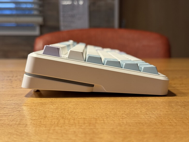 ガスケット構造による柔らかい打鍵フィーリングと、PBT ダブルショットキーキャップの質感が相まって、長時間のタイピングでも疲れにくく感じました。