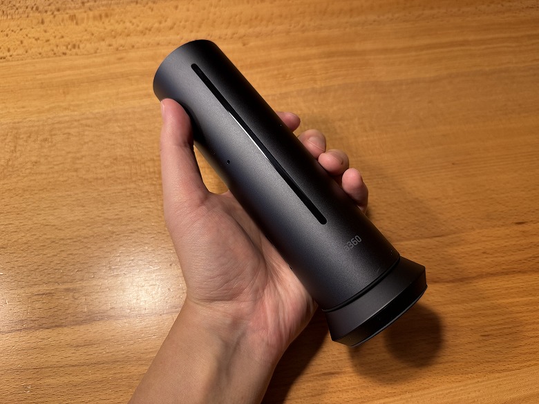 「Insta360 Wave」の外観は黒で統一され、筒状のシンプルかつクールなデザインです。