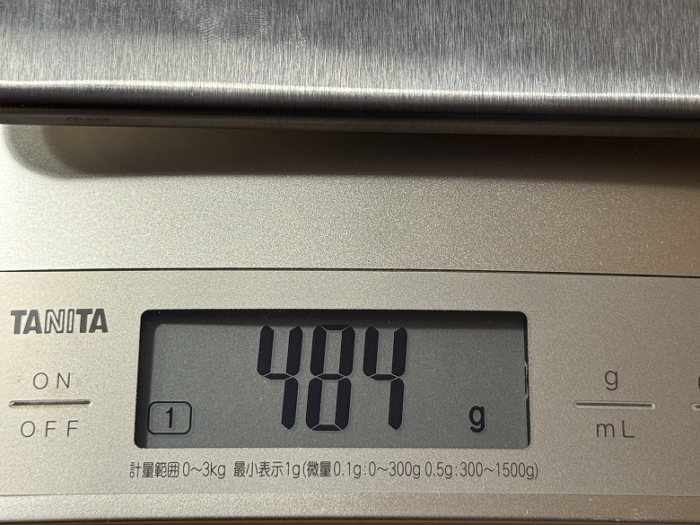 重さは484 gでした。