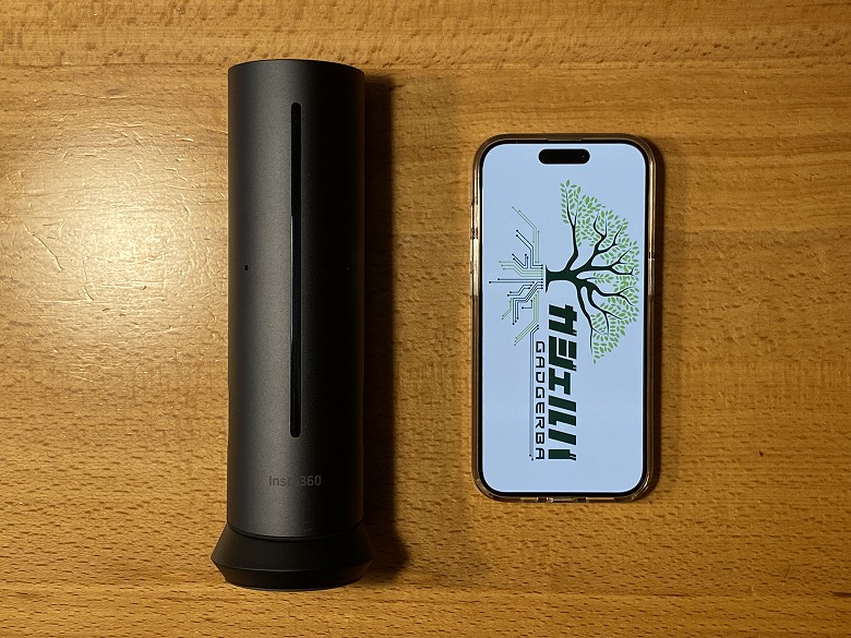 スマホ(iPhone 15 Pro)と比較するとこんな感じのサイズ感。