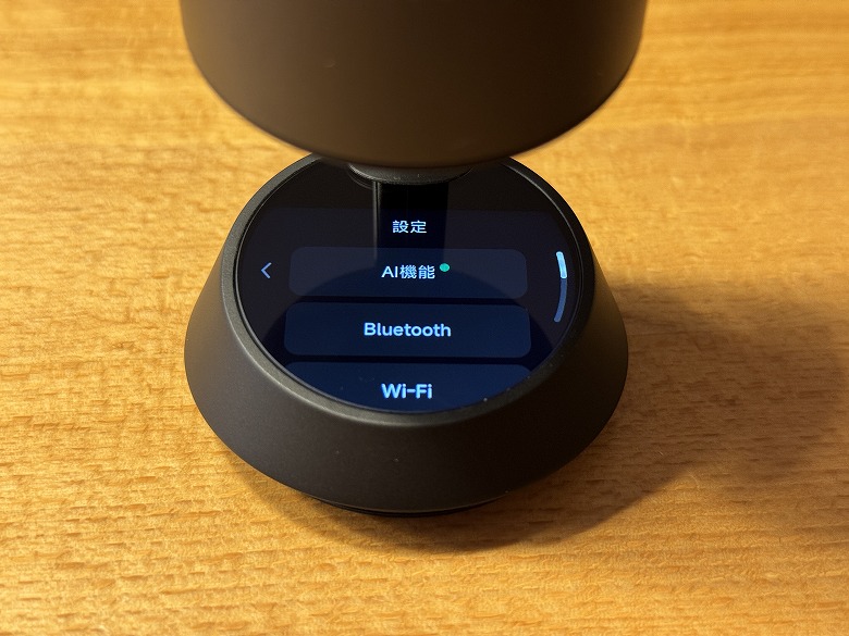 設定ではAI機能やBluetooth、言語や電源オフを確認・変更できます。