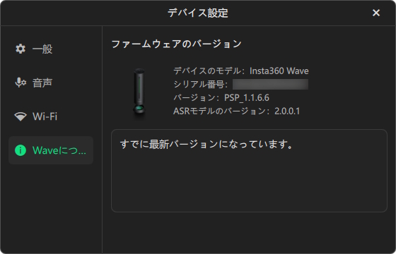 PCソフトである「Insta360 Wave Controller」をインストールすれば、PC画面上で各種設定が行えるようになります。