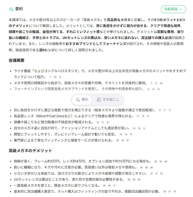 AI要約機能を試すために、私が以前公開したラジオ番組の内容を録音してみました。