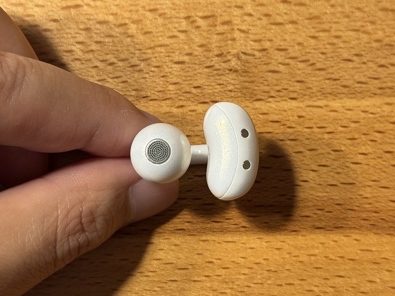 イヤホンも充電ケースと同じホワイトメタリックです。