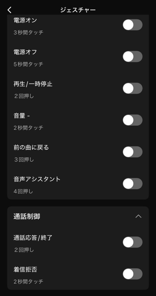 ジェスチャーも左右のイヤホンごとに設定できます。