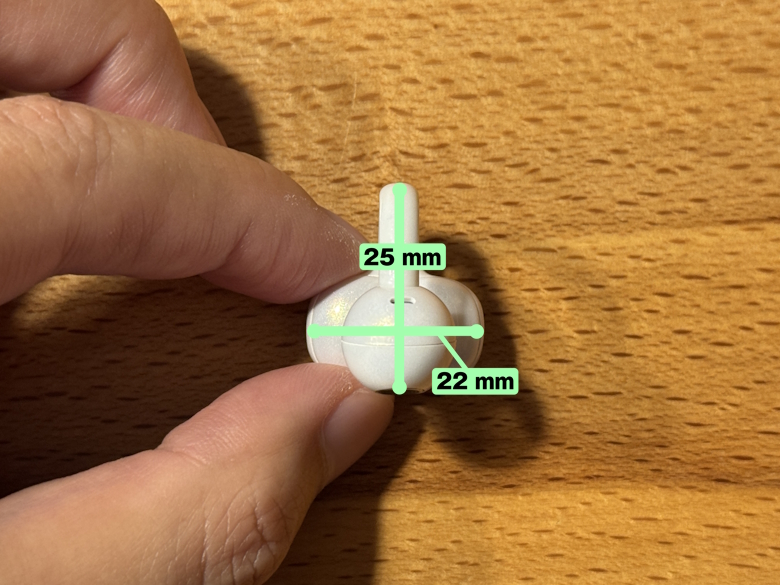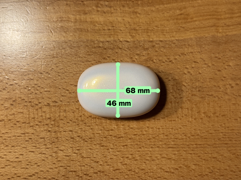 OneOdio OpenRock E」の充電ケースのサイズは46 × 68 mmです。