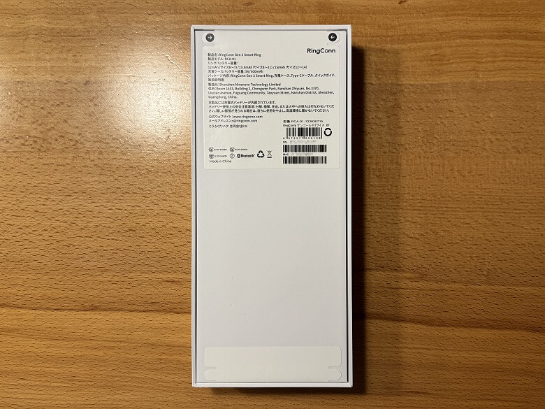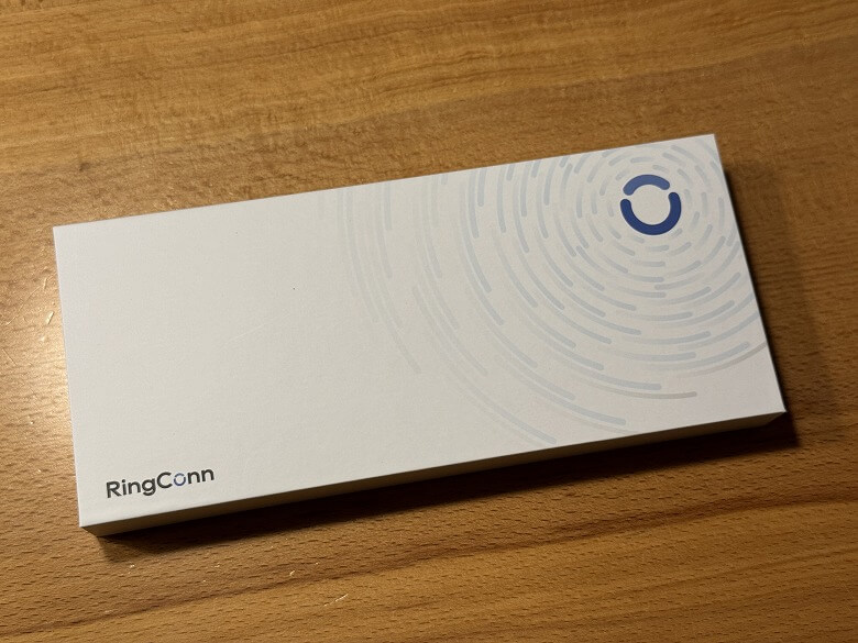 「RingConn Gen 2」の外箱は、白で統一され製品の写真がプリントされたシンプルなデザインです。