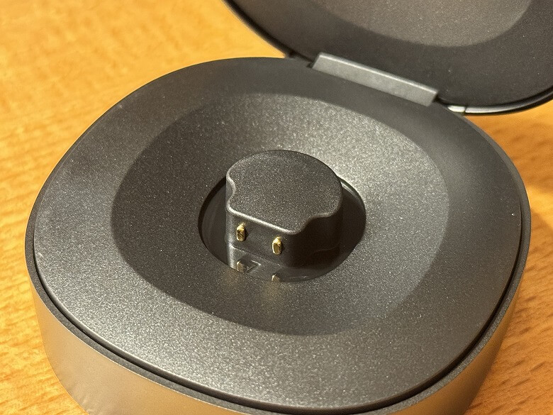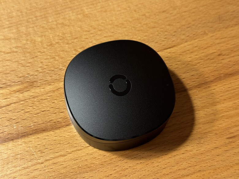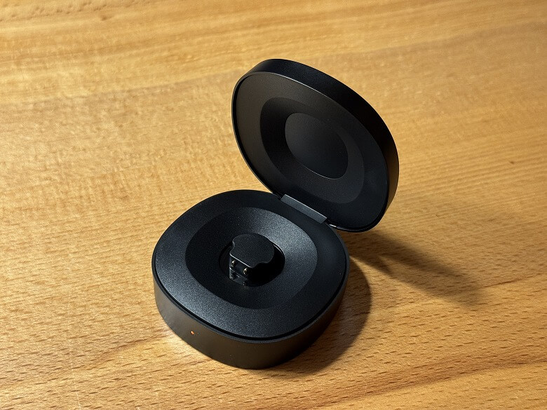 「RingConn Gen 2」の充電ケースはマットな黒で統一されたシンプルなデザインです。