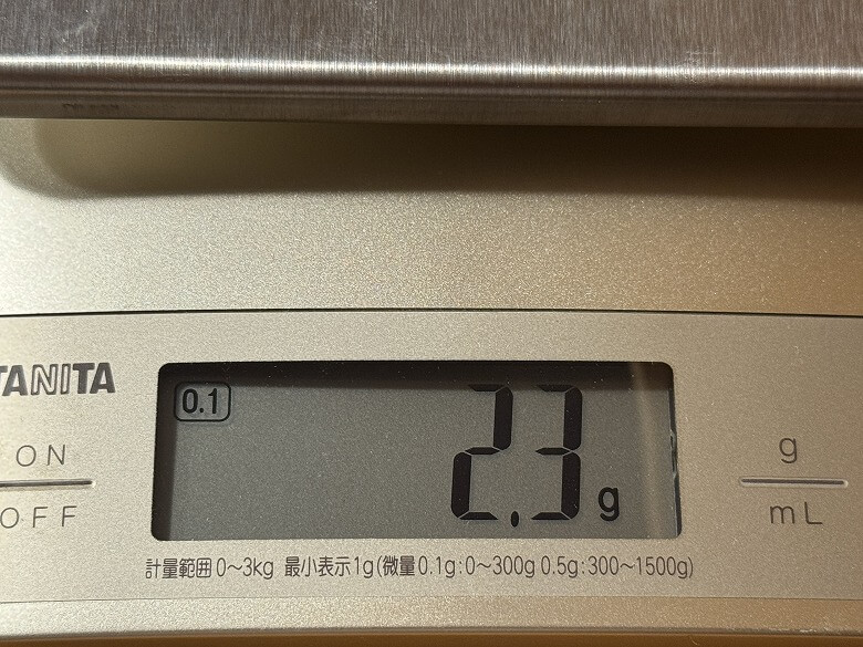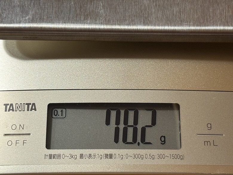 重さは充電ケースが78.2 g、リングは2.3 g(サイズ7)でした。