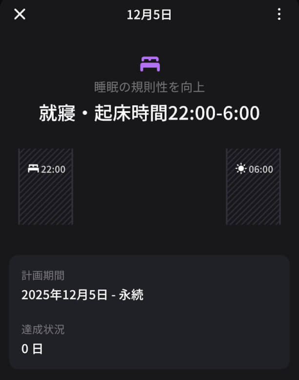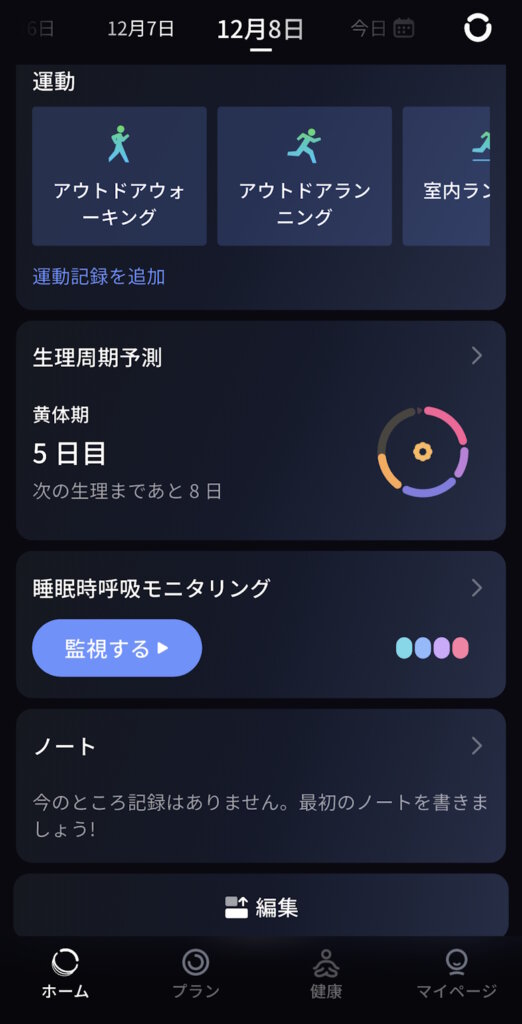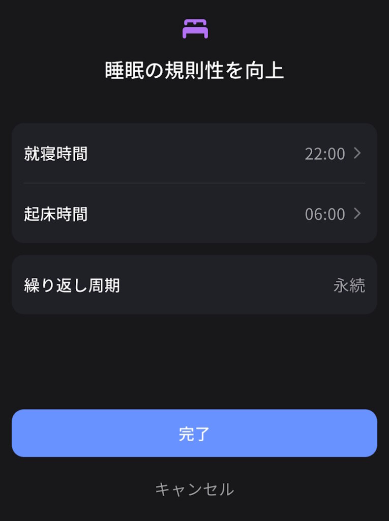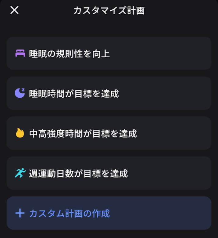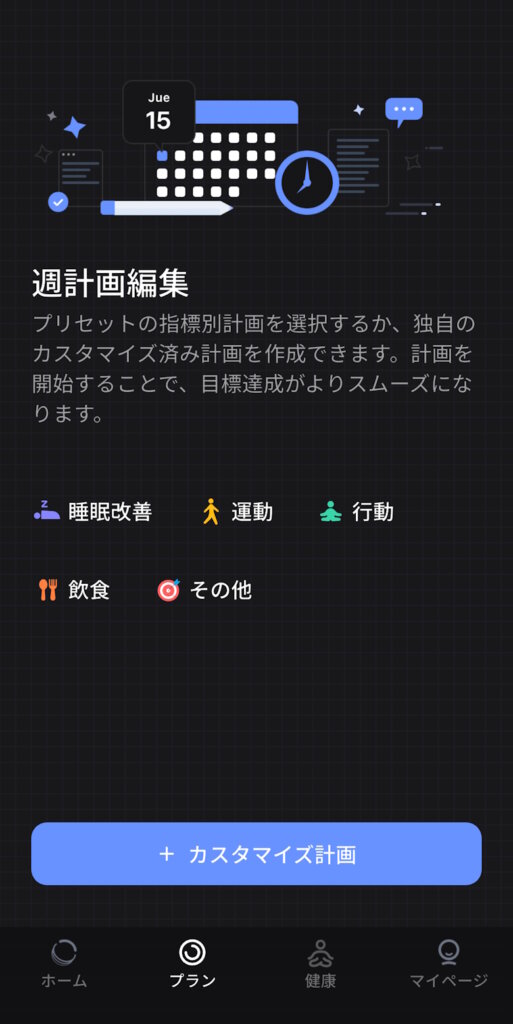 カスタマイズ計画で睡眠や運動などの計画を設定できます。