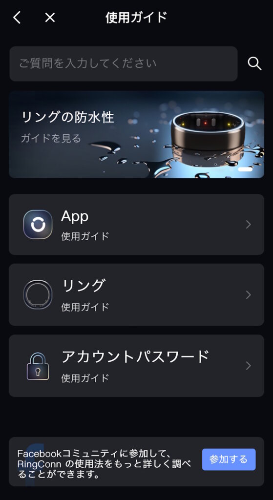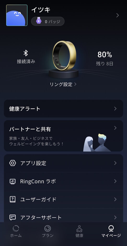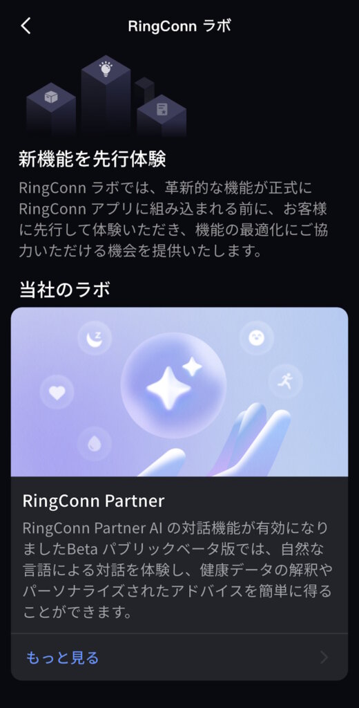 その他にRingConnラボや使用ガイドなど、各種項目を確認できます。