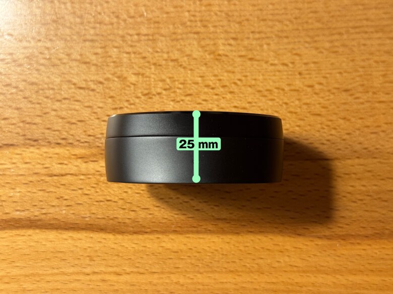 「RingConn Gen 2」の充電ケースの直径は65 mmです。