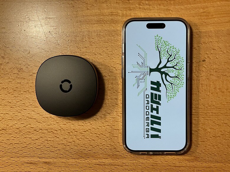 スマホ(iPhone 15 Pro)と比較するとこんな感じのサイズ感。