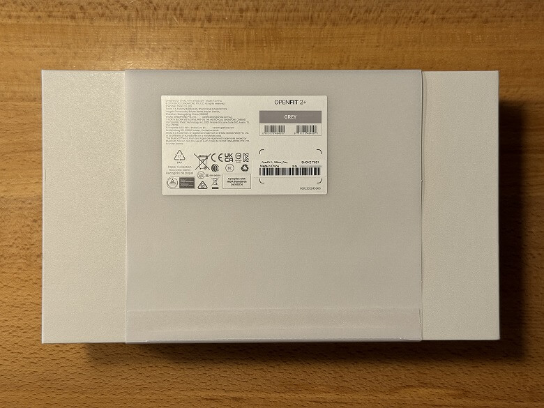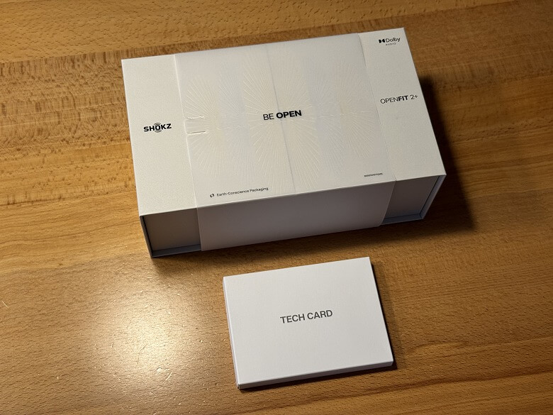 Shokz OpenFit 2+」の外箱は白くシンプルなデザインです。