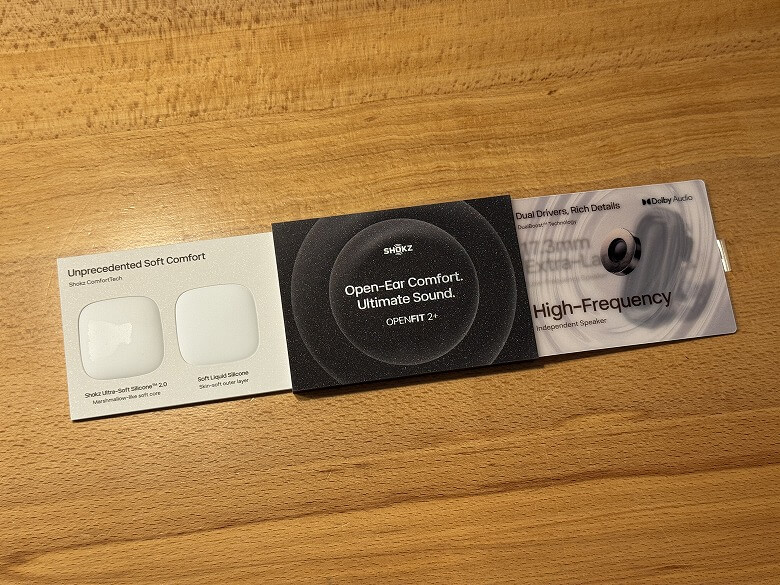 Shokz OpenFit 2+」は人気の過去モデル「OpenFit 2」がさらに進化し、オープンイヤーでもDolby Audio搭載で高音質を実現しています。