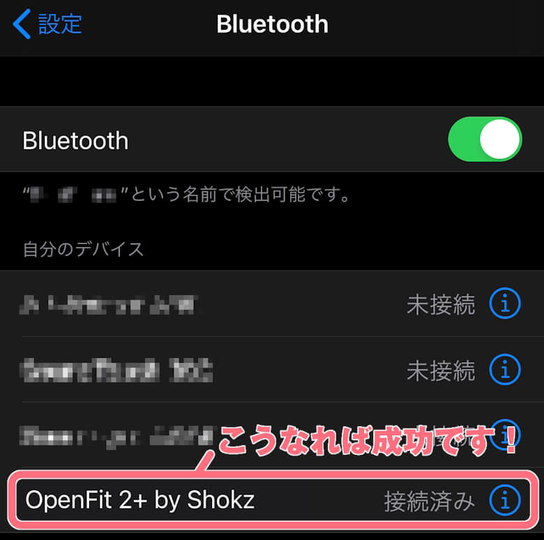 端末の画面に表示される「OpenFit 2+ by Shokz」を選びます