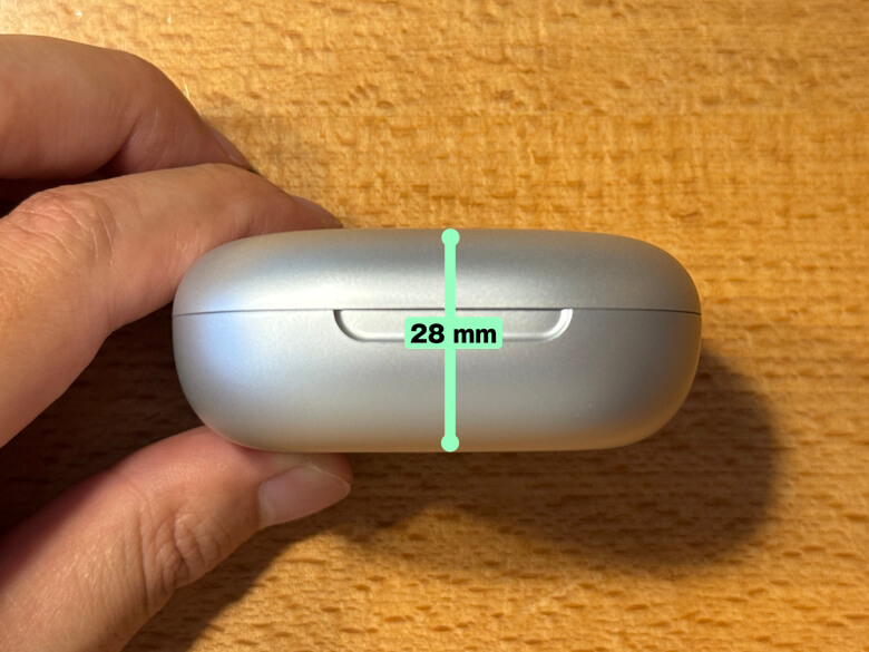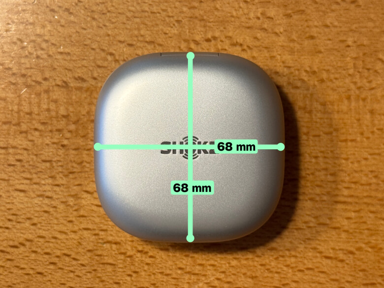 Shokz OpenFit 2+」の充電ケースのサイズは68 × 68 mmです。