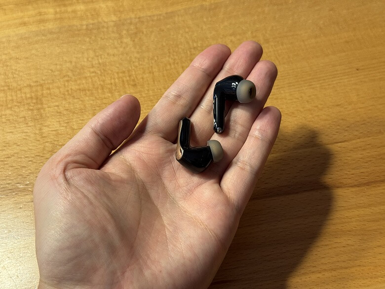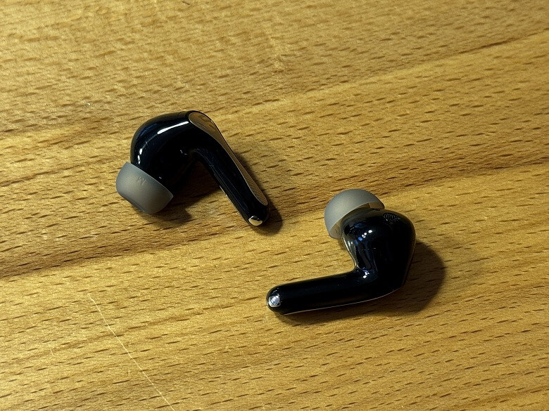 イヤホンも充電ケースと同じカラーリングで、ツヤツヤとした光沢感があります。