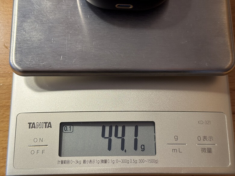 充電ケースの重さは44.1 g。