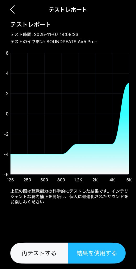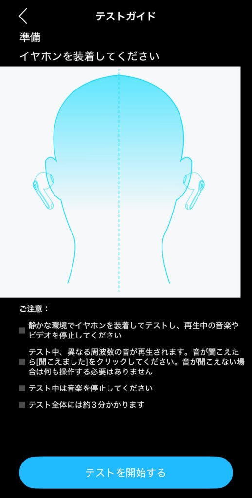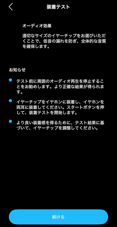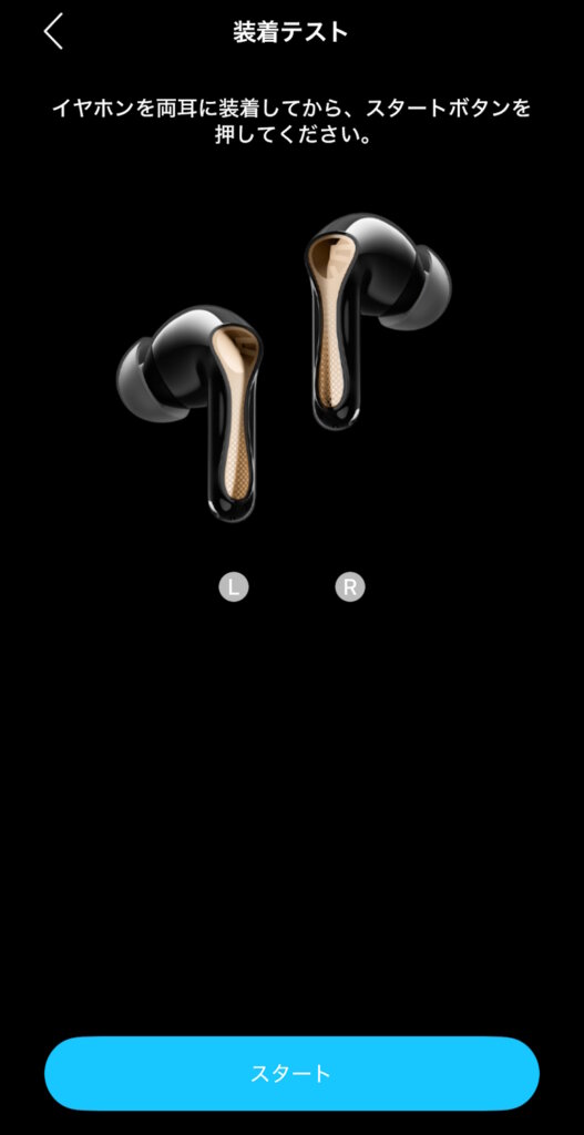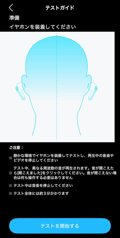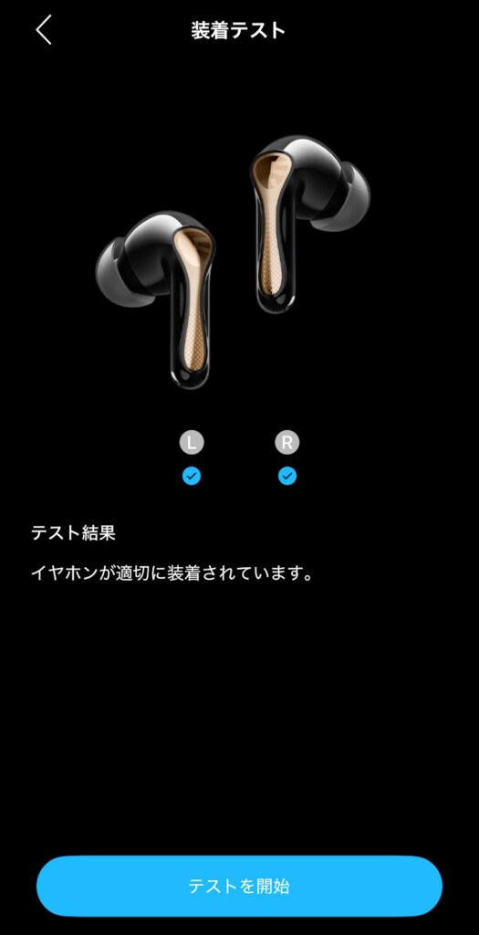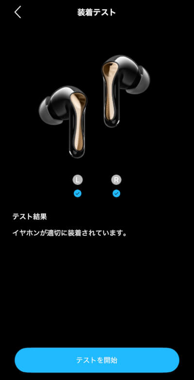 装着テストでイヤホンが適切に装着されているか確認できます。