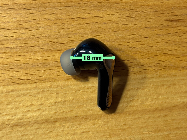 イヤホンの奥行きは18 mmでした。