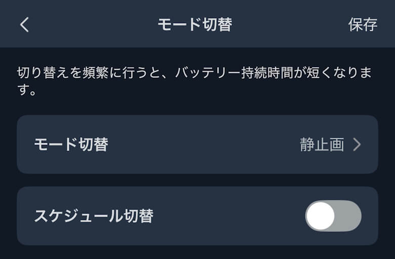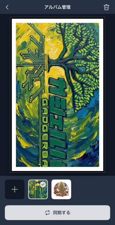 アルバム管理では作成した画像の閲覧や同期、モード切替ではスケジュールなどを設定できます。