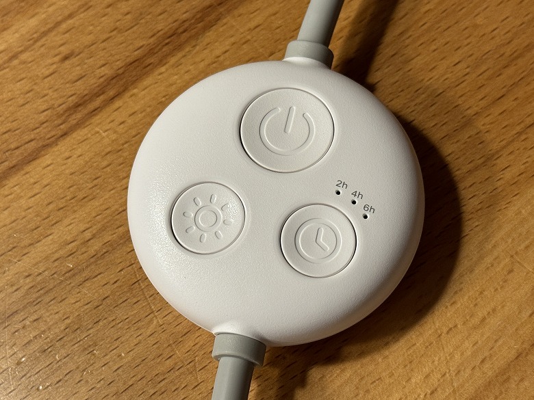 電源ケーブルには中間にコントローラーがあり、電源ON/OFFや光量、タイマーを設定できます。
