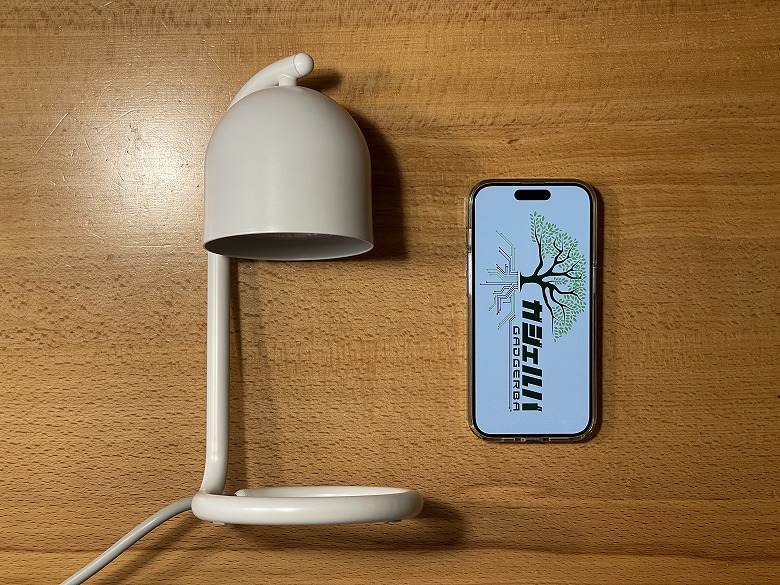 スマホ(iPhone 15 Pro)と比較するとこんな感じのサイズ感。