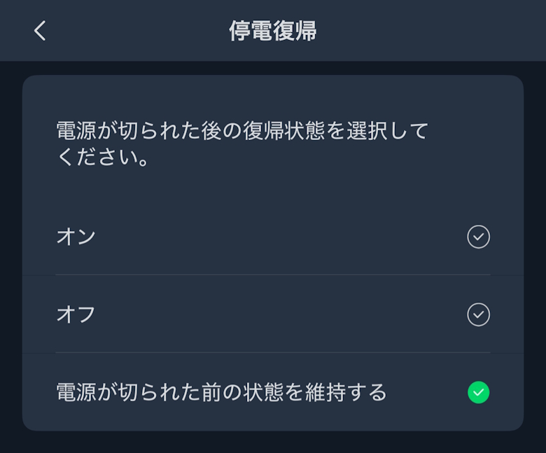アイコンや停電復帰などの設定を確認・変更できます。
