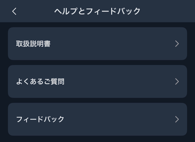 設定では各種項目を確認・変更できます。