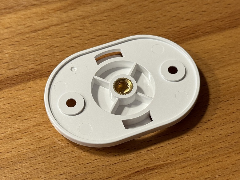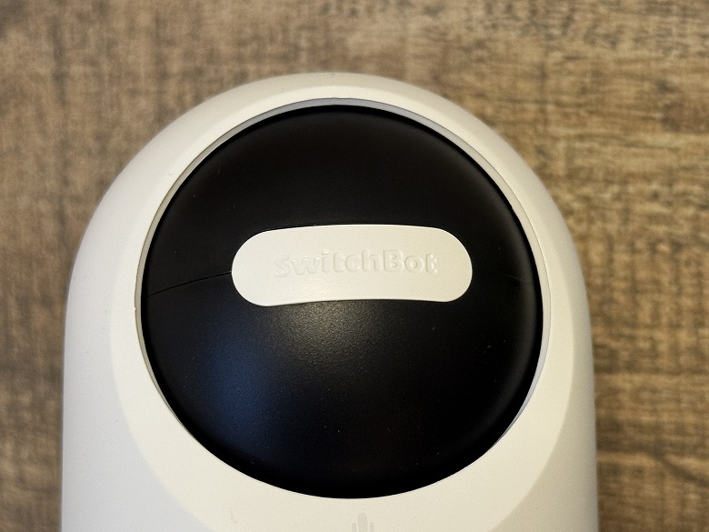 「SwitchBot 見守りカメラ Plus 5MP」は、白と黒のツートーンカラーでシンプルなデザインです。