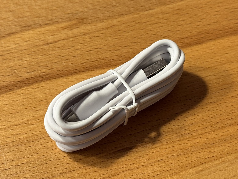 電源アダプターはUSB Type-Aに対応し、側面には仕様が記載されています。