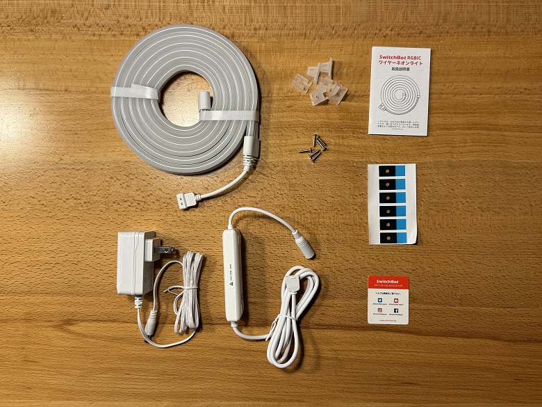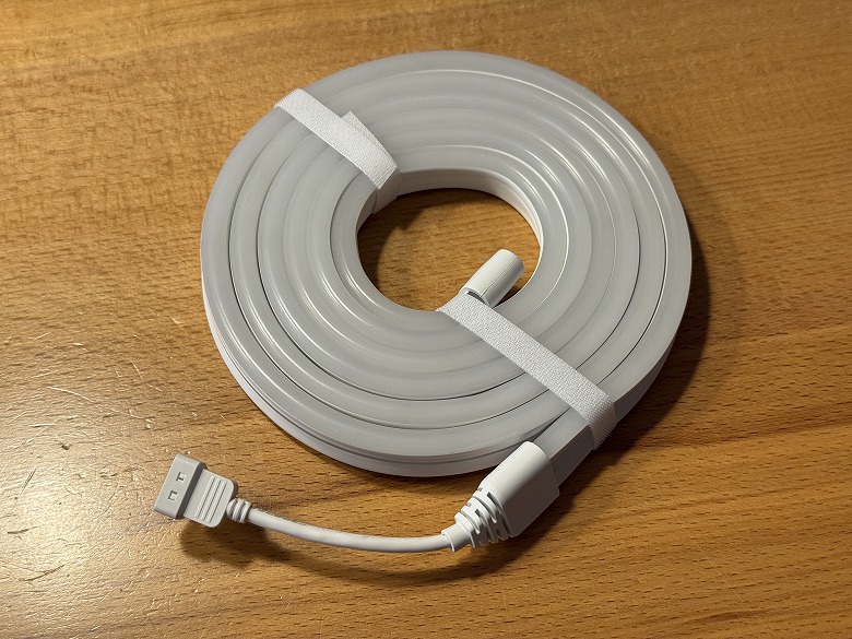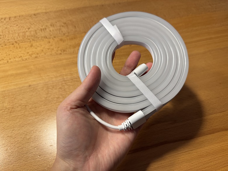 「SwitchBot RGBICワイヤーネオンライト」は全体的に白くシンプルなデザインです。