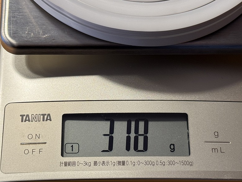 重さは318 gでした。