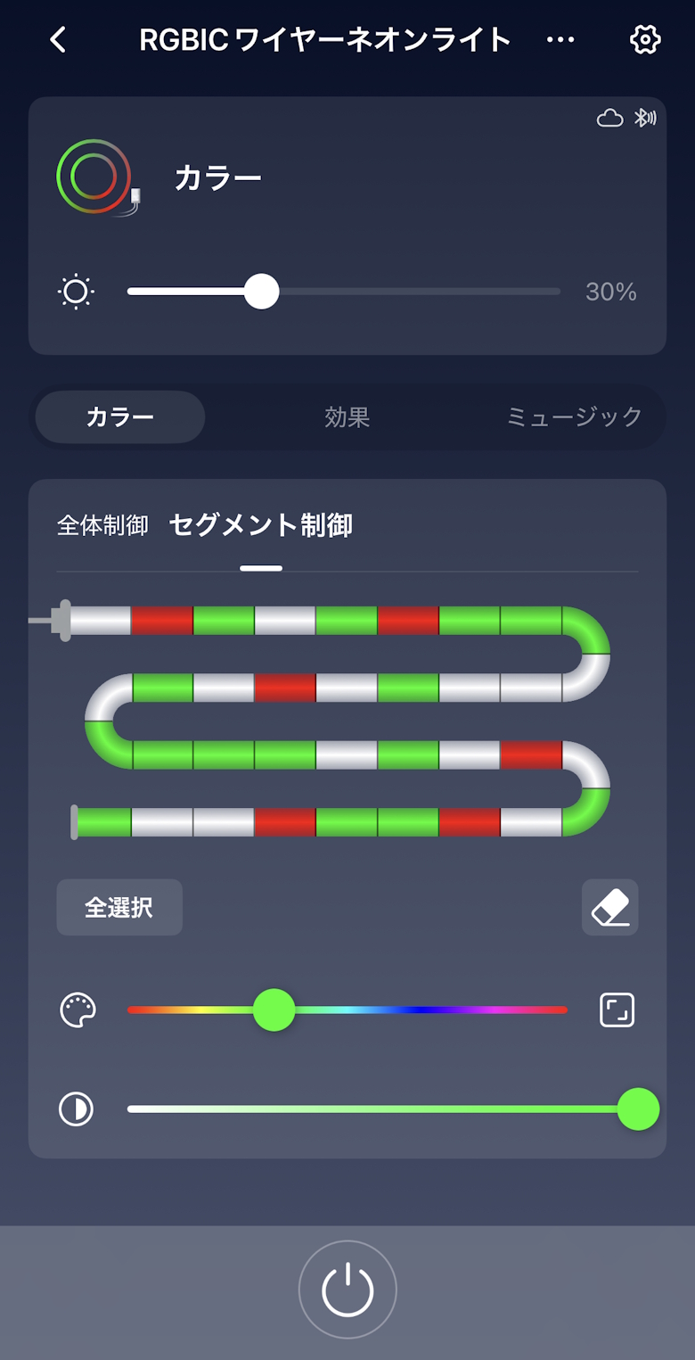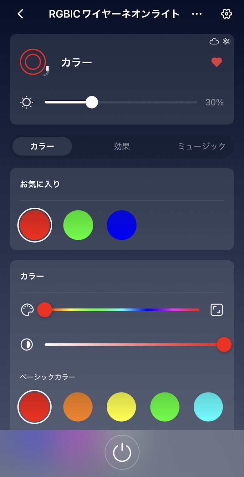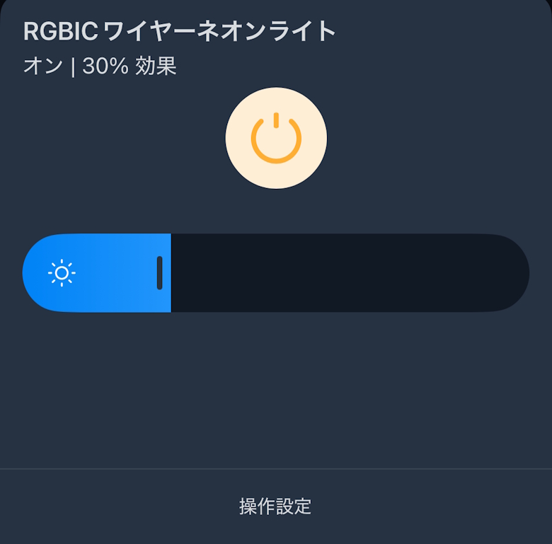 ホーム画面では電源ON/OFFと光量を調整できます。