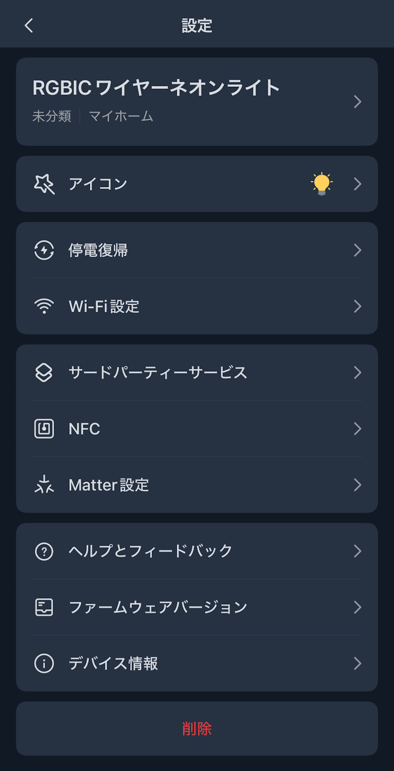 停電復帰やサードパーティサービス、NFCなど細かく設定変更できます。