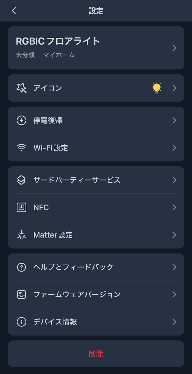 ホーム画面に追加した「RGBICフロアライト」が表示されたら完了です