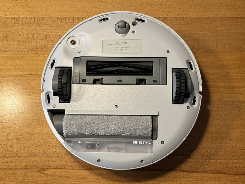 車輪は底面を下にして置くとロボット掃除機本体の中に沈みます。