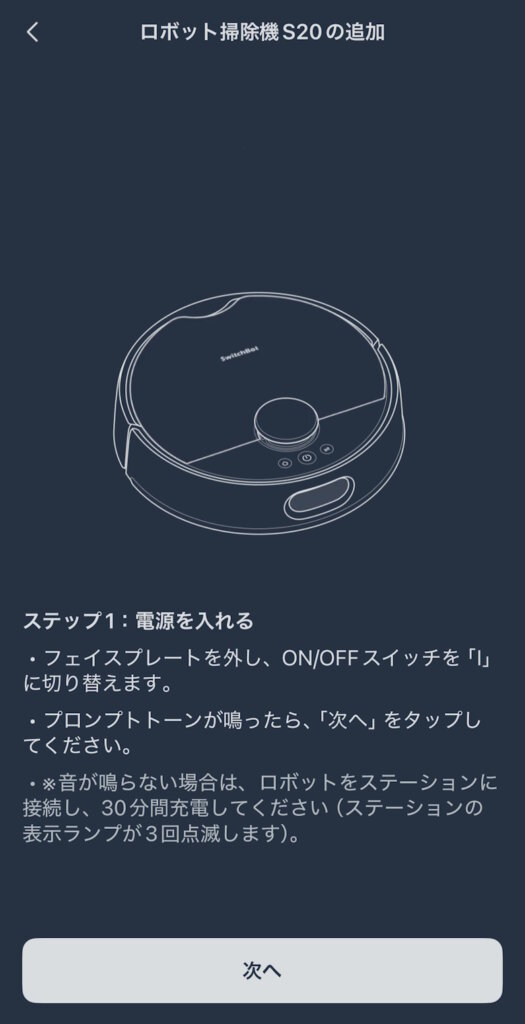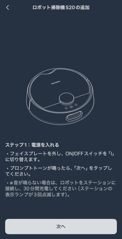 スマホアプリで「SwitchBot お掃除ロボットS20」を設定しましょう。
