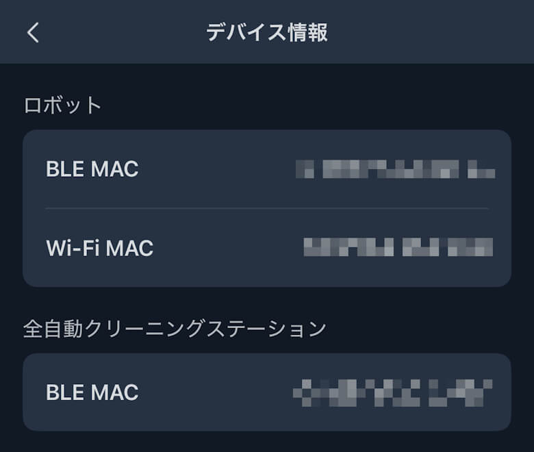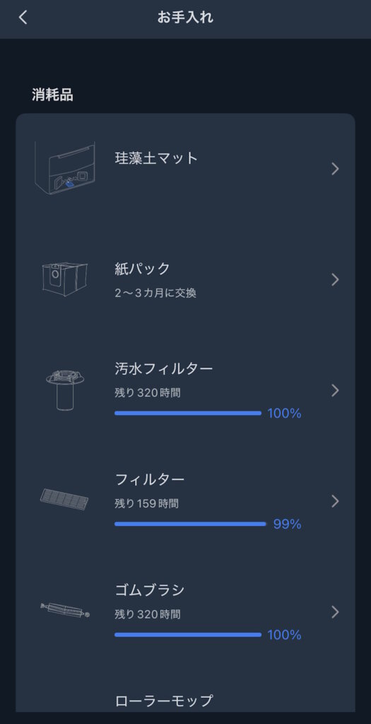 設定ではマップや掃除予約など、各種項目を確認・変更できます。