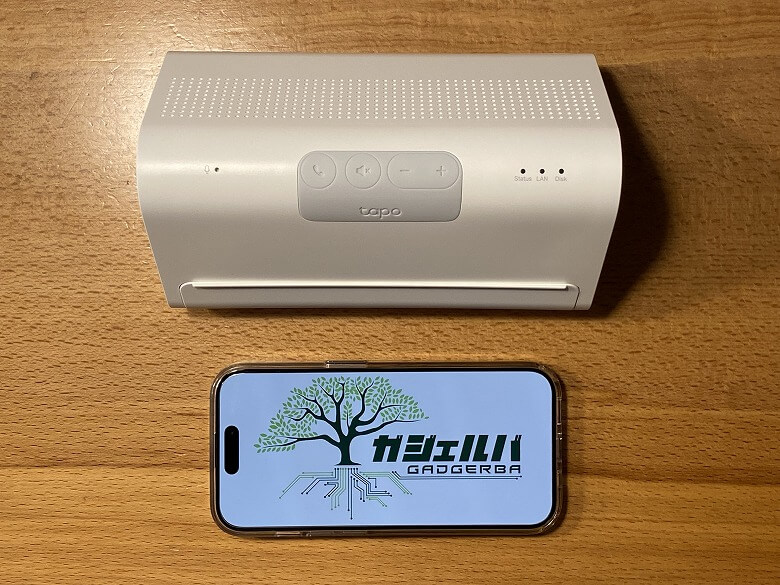 スマホ(iPhone 15 Pro)と比較するとこんな感じのサイズ感。