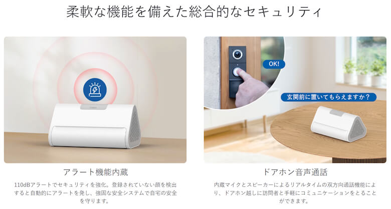 アラート機能やドアホン音声通話の機能で総合的なセキュリティを実現します。