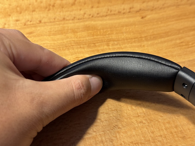 レザー調の素材で柔らかく、装着時の耳への負担がかかりにくくなっています。