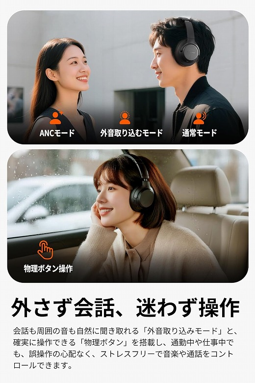 最大45dBのANC(アクティブノイズキャンセリング)を搭載し、屋内・屋外・通勤といったシーン別に最適化されたNCモードを備える本機は、環境に合わせて静寂を自在にコントロール可能。